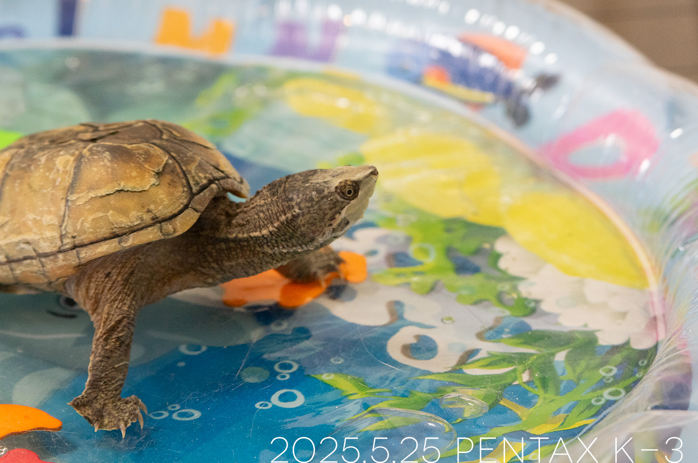ミシシッピニオイガメの「あずき」と「つぶら」