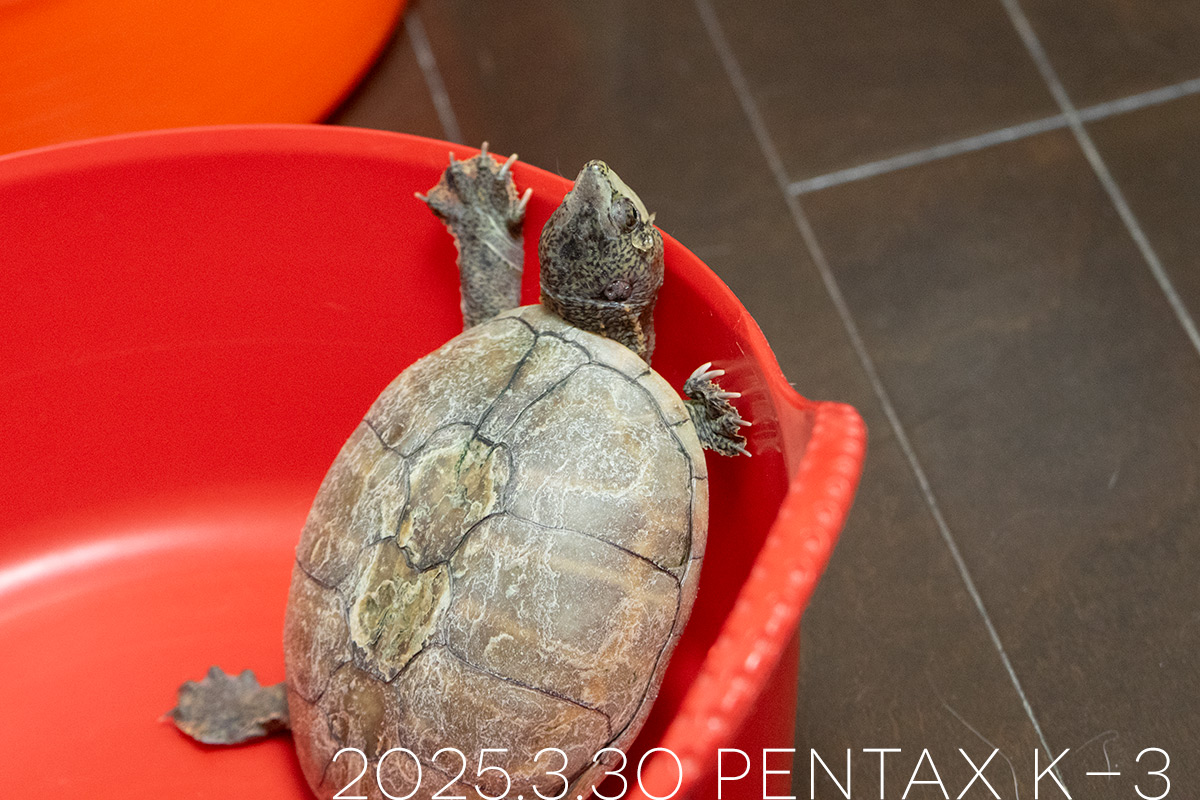実はこの箇所、あずきは何年かに一度くらいの割合で怪我をしています。水槽の中で暴れたときに植木鉢か何かでこすっちゃうみたいなんですね。